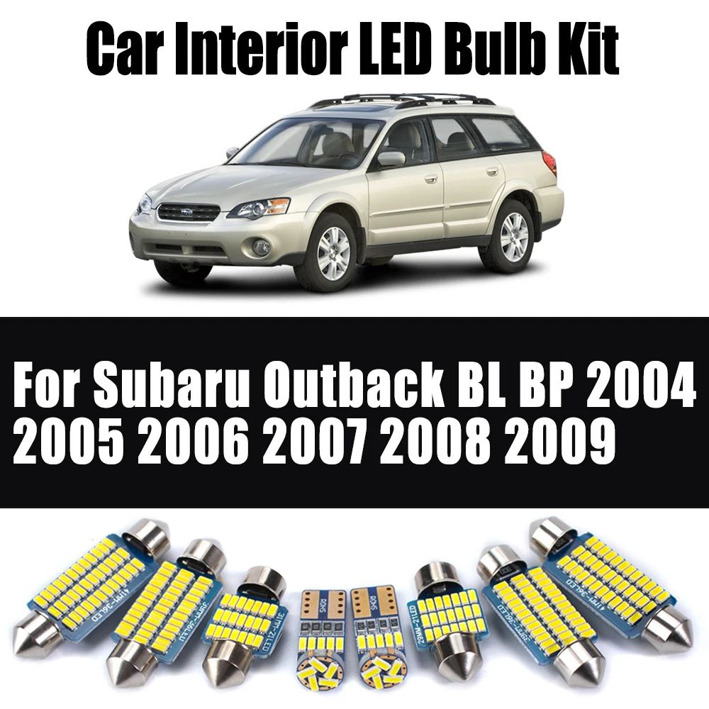 11Pcs Car Accessories For Subaru Outback BL BP 2004 2005 2006 2007 2008 2009 Interior Trunk Map Dome Plate Light LED Lamp Kit