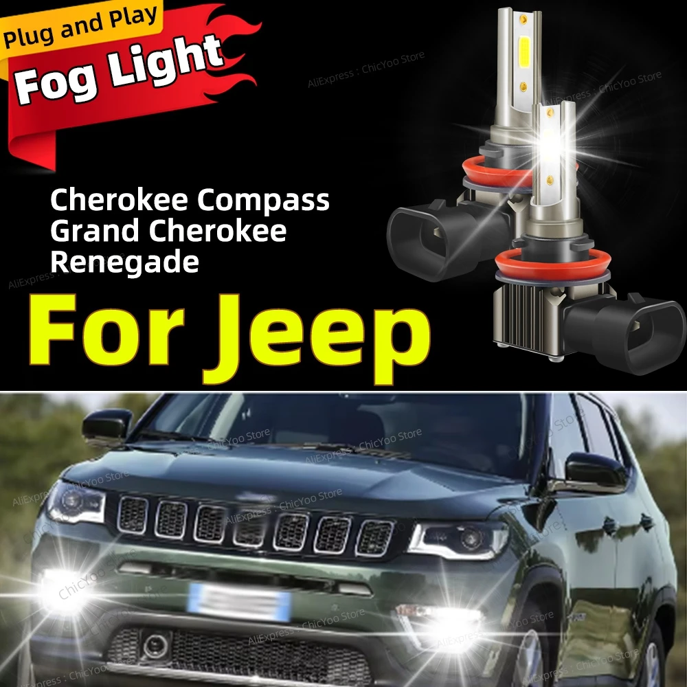 2Pcs 6000K LED Car Fog Lights Bulb Front Lamp For Jeep Cherokee KL 2014-2019 Compass 2011-2021 Grand Cherokee 2014-2020 Renegade