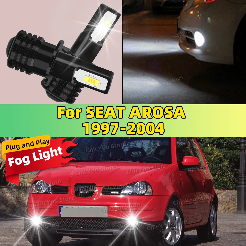 2Pcs H3 LED Bulb Fog Light 6000K White 20000LM Super Bright For SEAT AROSA 1997 1998 1999 2000 2001 2002 2003 2004