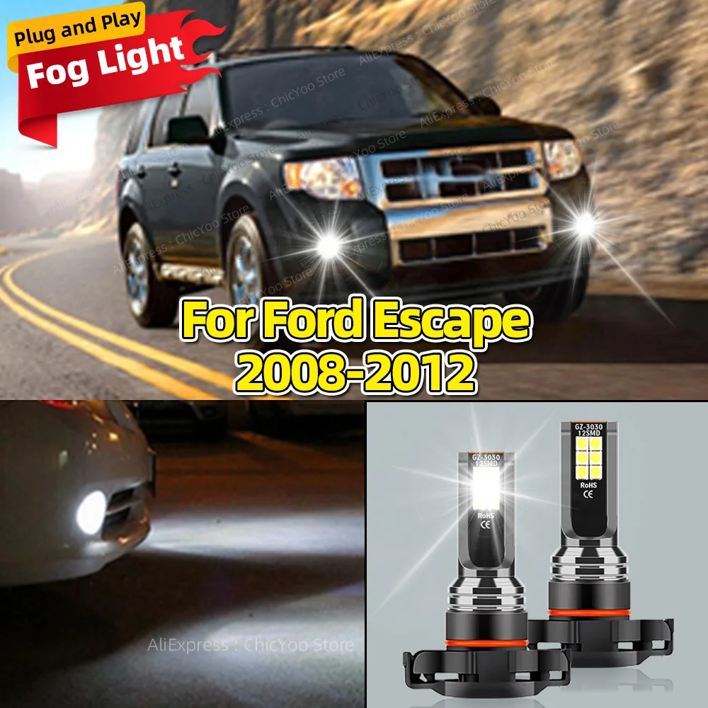 2Pcs LED Car Front Fog Light 6000K Lamps 5202 PS19W H16(EU)Bulb For Ford Escape 2008 2009 2010 2011 2012 Accessory Plug and Play