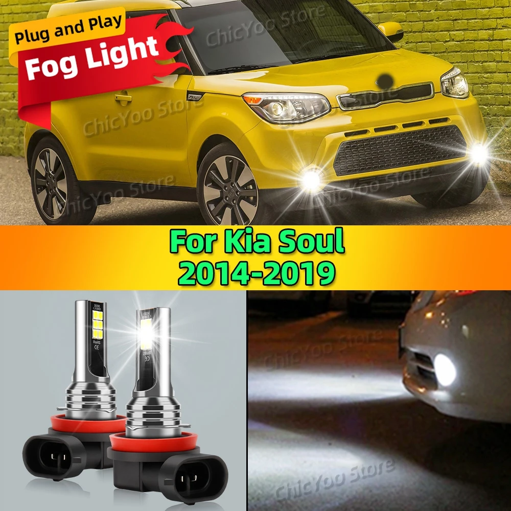 6000K Front Fog Light LED Bulb Accessories Lamp Canbus 80W For Kia Soul 2014 2015 2016 2017 2018 2019 Plug and Play