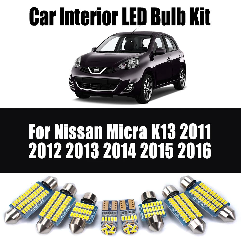 8Pcs Canbus LED Interior Light Kit For Nissan Micra K13 2011 2012 2013 2014 2015 2016 Car Reading Bulb License Plate Trunk Lamp