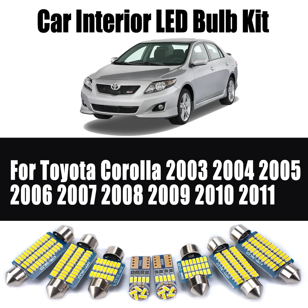 9Pcs Canbus LED Lighting Interior Light Kit For Toyota Corolla 2003-2006 2007 2008 2009 2010 2011 Car Bulb Dome Map Reading Lamp