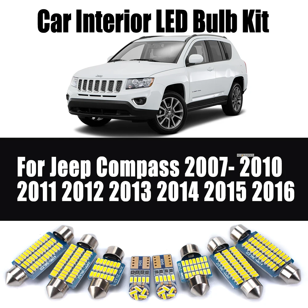 9Pcs LED Interior Reading License Plate Light Map Dome Trunk Bulb Kit For Jeep Compass 2007- 2010 2011 2012 2013 2014 2015 2016