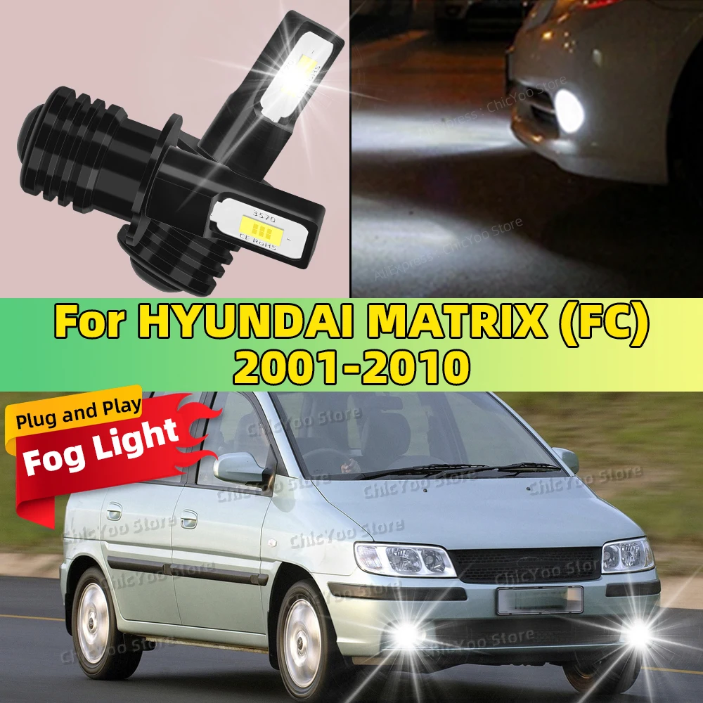 For HYUNDAI MATRIX FC 2001-2010 2004 2005 2006 2007 2008 2009 LED Fog Lamp Bulbs Car Front Fog Light White 6000K High Bright