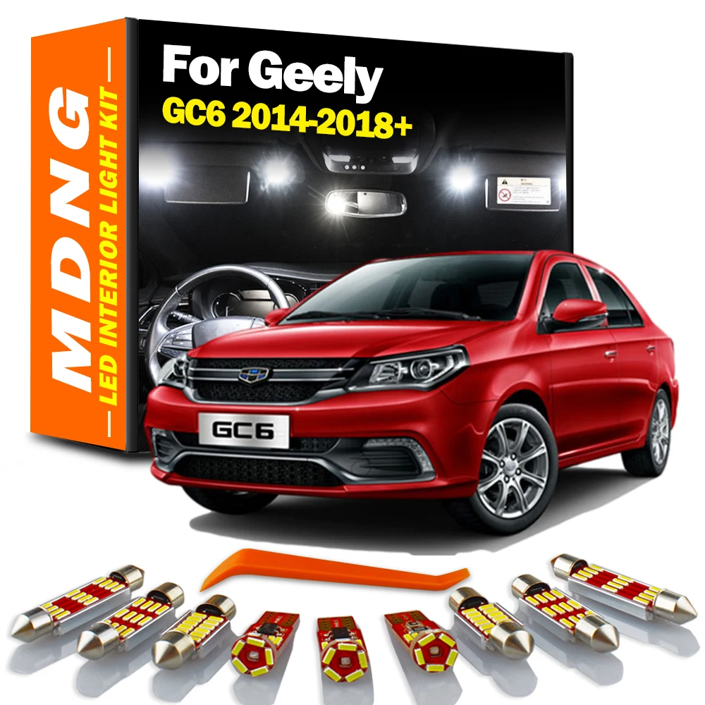 MDNG 10Pcs Accessories Canbus For Geely GC6 2014 2015 2016 2017 2018 2019+ LED Interior Dome Map Luggage Light Kit Car Bulbs