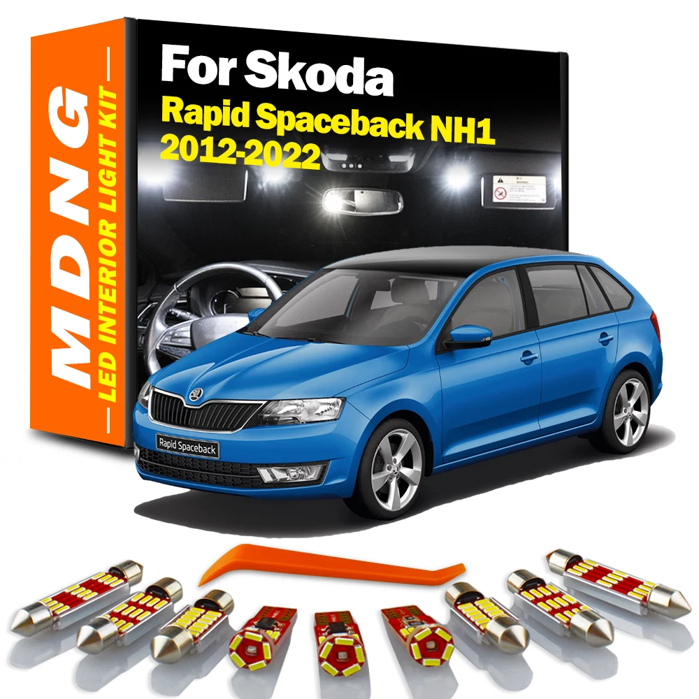 MDNG 10Pcs Canbus Car LED Interior Reading Light Kit For Skoda Rapid Spaceback NH1 2012 -2018 2020 2021 2022 Dome Map Trunk Lamp