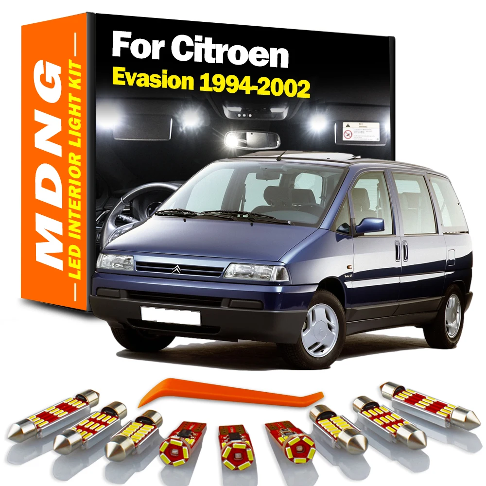 MDNG 10Pcs Canbus For Citroen Evasion 1994-2001 2002 Reading Bulbs LED Interior Map Dome Luggage Light Kit Car Accessories