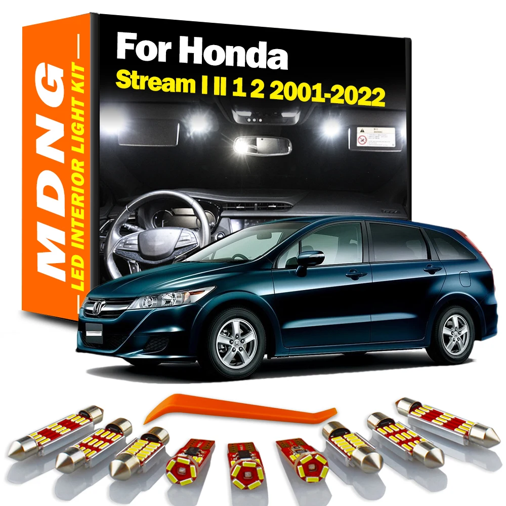 MDNG 10Pcs Canbus LED Interior Dome Map Indoor Light Kit For Honda Stream I II 1 2 2001-2018 2019 2020 2021 2022 Car Accessories