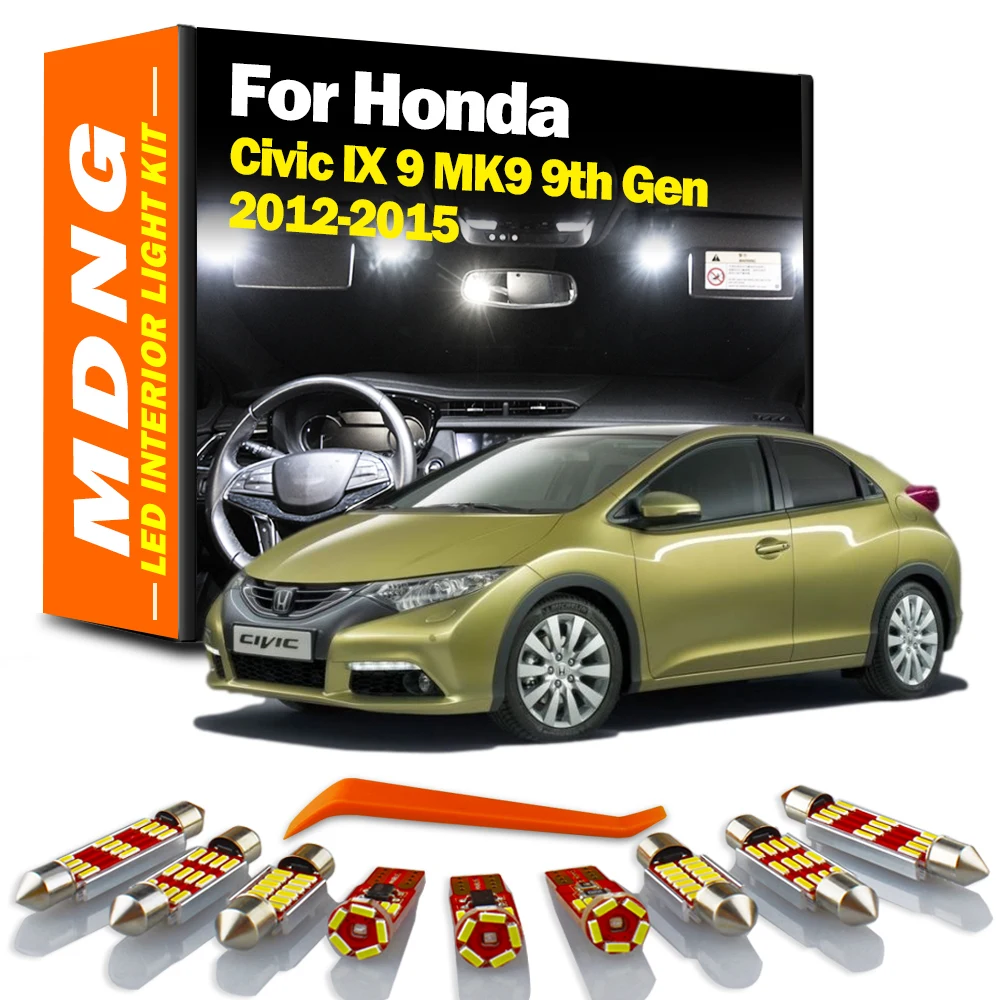 MDNG 11Pcs Canbus Indoor Lamp For Honda Civic IX 9 MK9 9th Gen 2012 2013 2014 2015 Vehicle Bulbs LED Interior Map Dome Light Kit