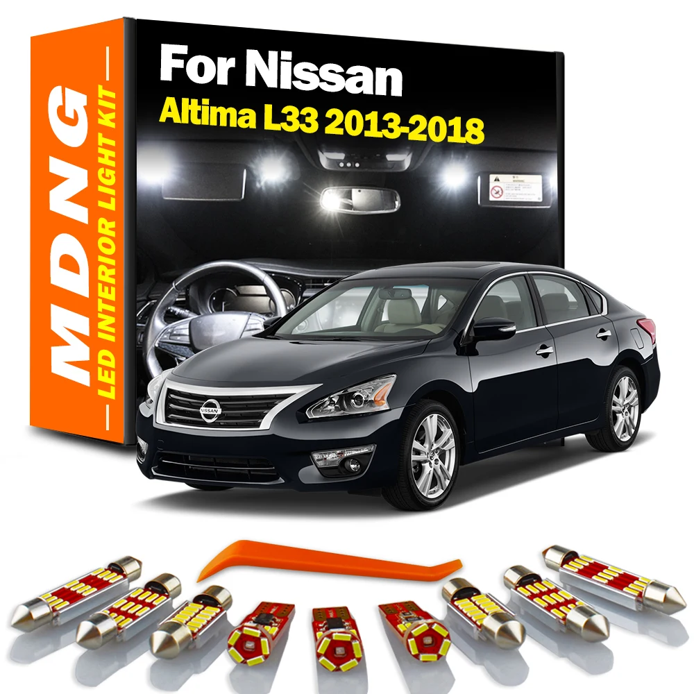 MDNG 13Pcs LED Interior Map Dome Door Light Kit For Nissan Altima L33 2013 2014 2015 2016 2017 2018 Number Plate Sunvisor Lamp