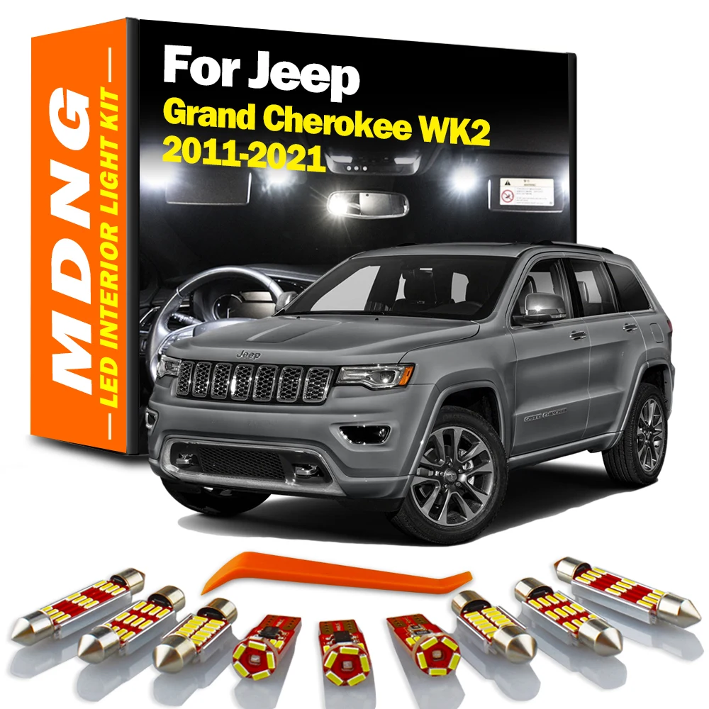 MDNG 15Pcs Canbus Interior LED Map Dome Trunk Light Kit For Jeep Grand Cherokee WK2 2011-2017 2018 2019 2020 2021 Reading Bulbs