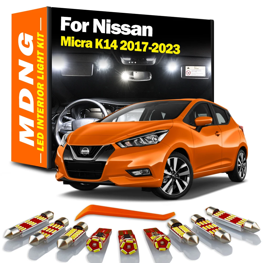 MDNG 7Pcs For Nissan Micra K14 2017 2018 2019 2020 2021 2022 2023 Car Number Plate Bulbs LED Interior Reading Map Dome Light Kit
