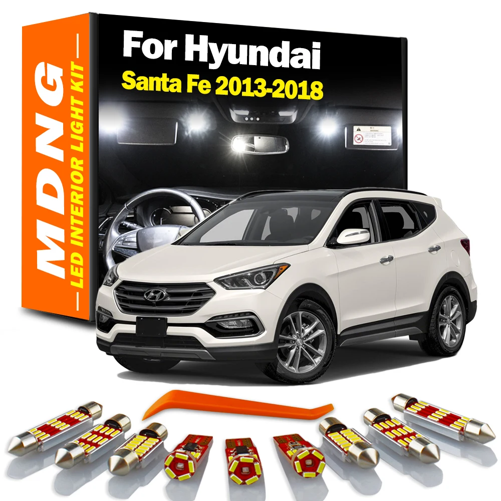 MDNG 9X Car Led Interior Light Kit For Hyundai Santa Fe 2013 2014 2015 2016 2017 2018 Map Reading Trunk Dome License Plate Lamps