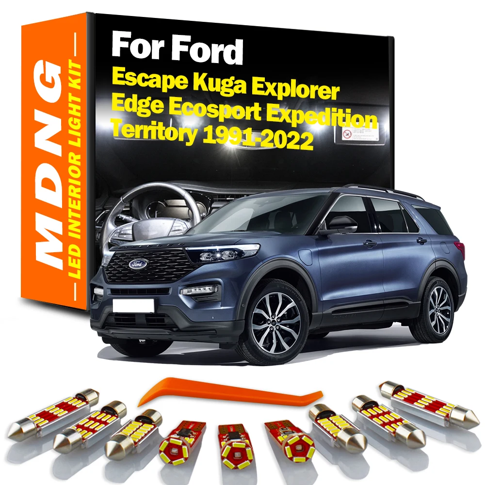 MDNG LED Interior Map Dome Light Car Bulbs Kit For Ford Escape Kuga Edge Ecosport Expedition Explorer Territory Sun Visor Lamp